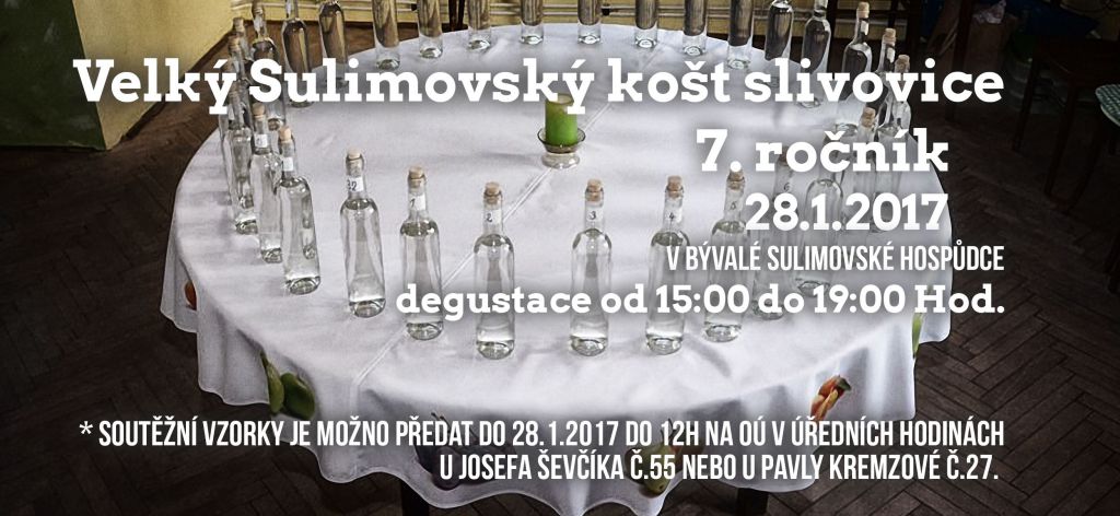 - košt se koná 28.01.2017 v bývalé Sulimovské hospůdce.