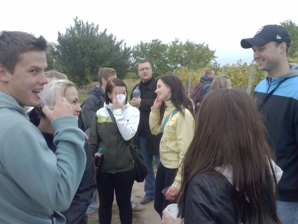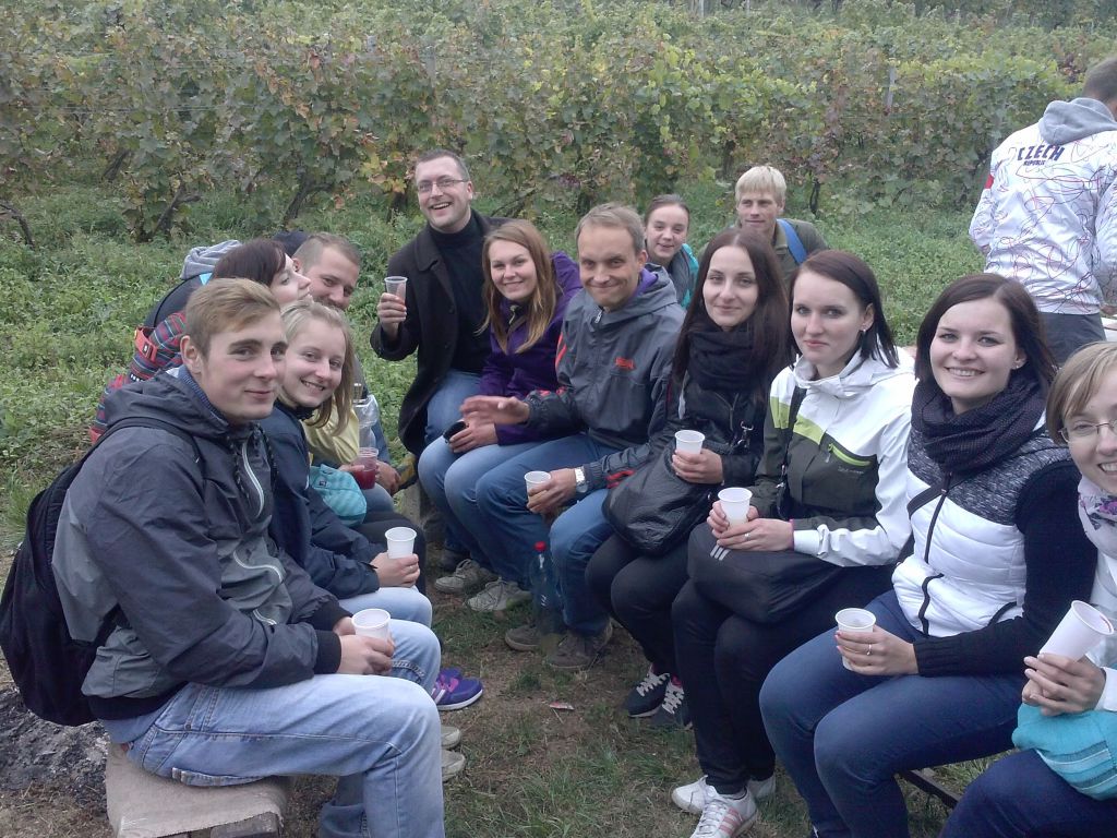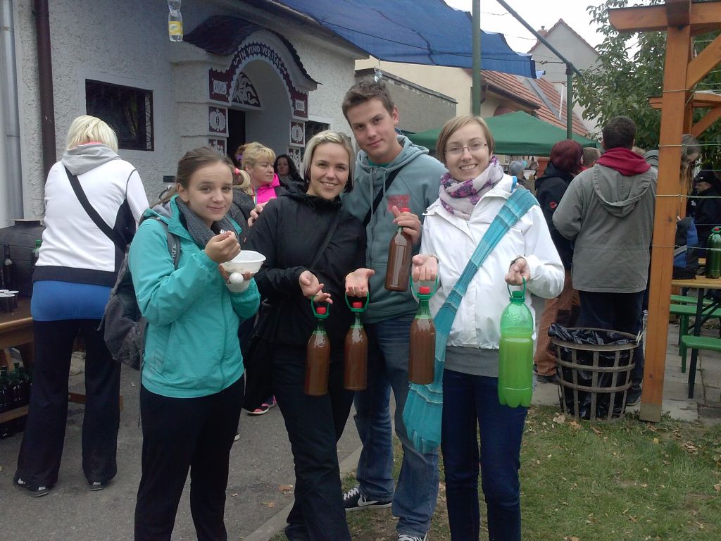 Časté zastávky po stáncích s čerstvým burčákem příjemně zpestřovaly procházku mezi vinohrady a než se výletníci nadáli, už byli v polovině trasy - v lokalitě sklepů Dubňanské hory - a nastal čas na něco dobrého k snědku. A že byl výběr! Místní vinaři připravili řadu těch nejlepších domácích specialit. Největší hitovkou byly sýry, česnečky a chleby se škvarkovou pomazánkou. Druhá polovina cesty, která stočila trasu pochodu zpátky do Mutěnic, již probíhala ve značně uvolněnějším duchu. Tím nejlepším vyvrcholením pak bylo zakončení pochodu v části obce Mutěnské Búdy, kde své sklepy obhospodařuje neuvěřitelných 600 rodin!