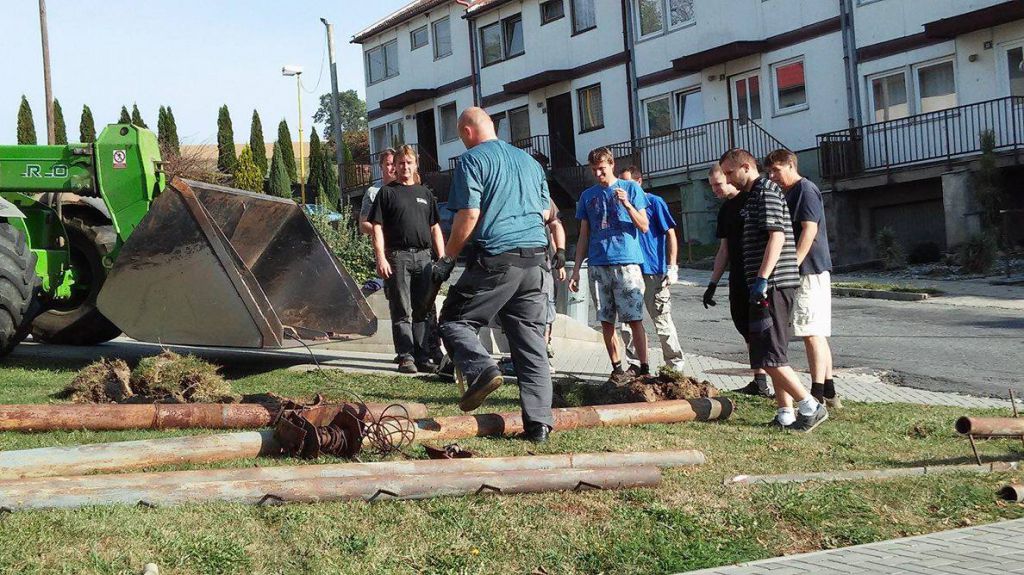 Brigáda na odstranění sušáku hadic a úpravu okolí koupaliště 1. 10. 2016