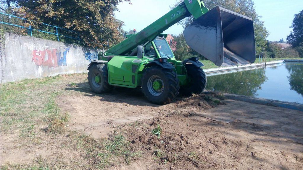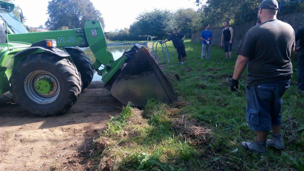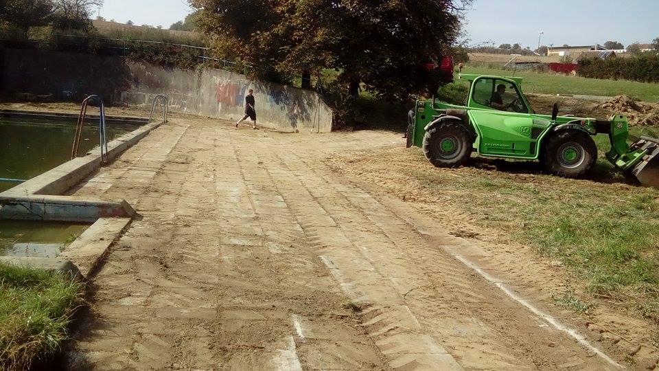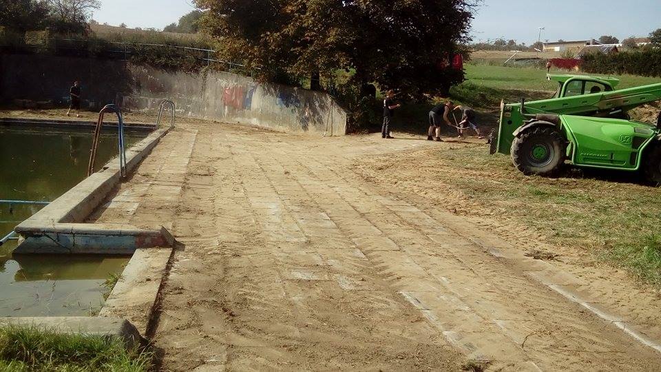 Brigádnické práce poté pokračovaly u požární nádrže, kde byl zapraven prostor kolem přítoku vody, který byl opraven v dubnu. Obrovské proměny evokující staré časy pak areál dosáhl, když hasiči za pomocí nakladače očistili dlažbu po dvou stranách nádrže od hlíny a trávy.