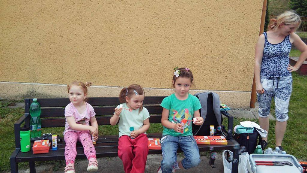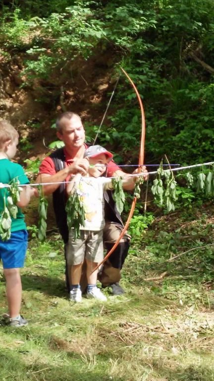 Krátce po 14. hodině vyrazila skupina od autobusové zastávky polními cestami směrem k lesu. První zastavení bylo naplánováno u sulimovské studánky. Po krátkém příjemném zchlazení se vyrazilo směrem do skaly, kde čekalo všechny překvapení. Chlapi totiž zorganizovali brigádu, při které celé skalní udolíčko posekli, udělali nové ohniště a dokonce vyrobili dřevěné lavice a stoly. Navíc si pro děti připravili několik atrakcí, z nichž největšího ohlasu se dostalo střelbě z luku, praku a vzduchovky.