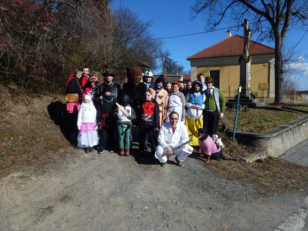 V sobotu 25. února proběhl v naší obci masopust. Krátce po poledni se dědinou rozezněla muzika, to když průvod maškar v čele s medvědem vyrazil na svou pochůzku po jednotlivých staveních. Letošní skupina čítala 19 postav, mezi kterými nechyběli představitelé ryze tradiční jako doktor nebo hasič. I tentokrát se však objevila celá řada originálních kostýmů, ať už z pohádek nebo reflektující aktuální dění. Samuraj, víla, rytíř, Sněhurka, ferda mravenec s beruškou či známá rodinka Flinstounů, ty všechny bylo možné na návsi potkat. Svou účastí v průvodu nás poctila dokonce jedna z největších českých hvězd poslední doby paní Gabriela Koukalová.