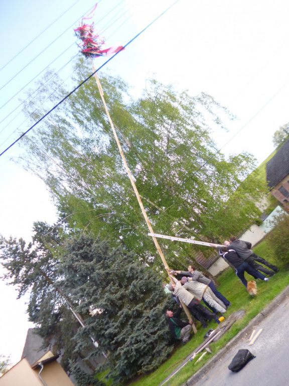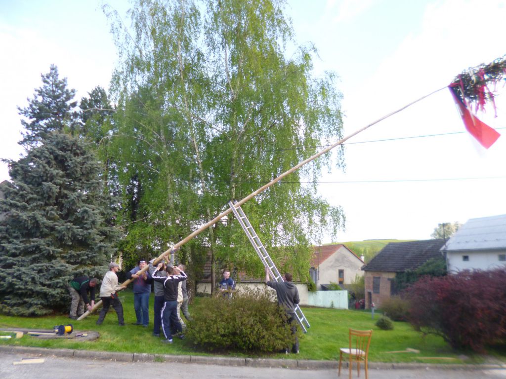 Jak tradice velí 30. dubna jsme stavěli obecní májku. Tu jsme vztyčili již třetí rok v řadě uprostřed parčíku za zastávkou. Program pak pokračoval na víceúčelovém hřišti fotbalovým mačem malých proti velkým a samozřejmě nechyběl ani táborák. Následovala každoroční dlouhá filipojakubská noc u ohně.